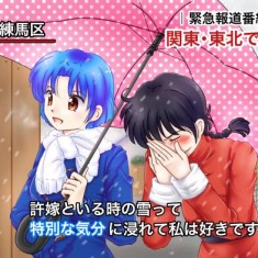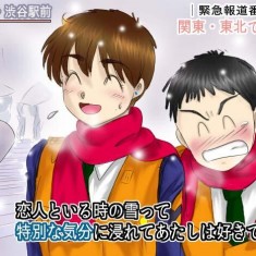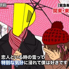 Tudo começou quando este simpático casal da foto foi entrevistado no último fim de semana, depois que uma forte tempestade de neve atingiu o Japão. Esta foi a maior nevasca que o Japão enfrentou desde 1994. A capital Tokyo foi coberta por 8,7 centímetros de neve enquanto a cidade de Matsumoto foi enterrada por 19 centímetros e mais algumas polegadas.