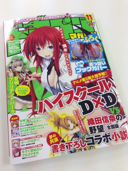 A Dragon Magazine que publica Ichiei Ishibumi e High School DxD de Miyama-Zero incluíram uma pequena surpresa especial na edição de novembro da revista-a capa do livro de mama da High School DxD 3D, com os seios fartos de Rias Gremory.