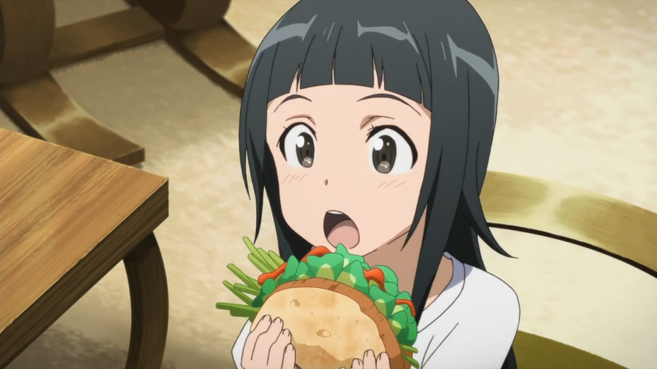 Hmmm, essa parte de comida da água na boca e nada seria melhor que os sanduíches lendários da Asuna. No anime, ela se destaca como uma super cozinheira com tecnicas monstruosas de preparar uma refeição. Agora sabemos o porque Kirito se apaixonou por ela (alguem aí deve ter feito a piadinha de que ele se apaixonou porque a comida é boooooa!). Só espero que ele não dê mais sanduíches apimentados para a Yui.