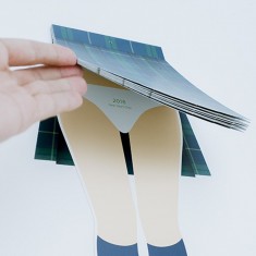 O nome do produto é Sukaato mekuri karendaa 2015 ou “Calendário 2015-Subindo a Saia 2015“. Projetado apenas com a parte inferior do corpo feminino, onde cada camada da saia representa um mês, que ao longo do ano vai desaparecendo até chegar aos ‘finalmentes‘. Foi desenhado desta forma, para que o ‘tarado’ possa completar com alguma foto de alguma Idol que ele goste(Vai entender). Este produto estará disponivel na Amazon japonesa em 27 de Outubro.