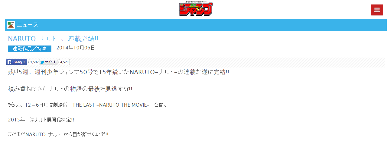 Em 2012, Kishimoto confirmou que a série estava caminhando em direção ao seu clímax e que ele já tinha a história final em mente. Mais tarde no mesmo ano, ele AFIRMOU que a série teria pelo menos mais um ano e meio de vida apenas. Abaixo você pode ver em japonês, a confirmação do fim da serie em Novembro. Vale destacar que a série é classificada como a 4ª entre os 10 melhores títulos da Shonen Jump, em termos de volume de vendas em 2012.