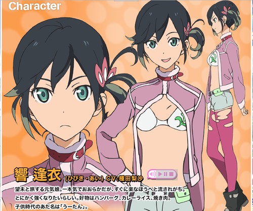 Risa Taneda como Ai Hibiki, uma menina otimista viajando com Nozomi. Ela tem uma mente fechada e um grande coração, é rápida para se sentir-se em uma situação confortável. Em qualquer caso, ela quer se tornar forte. Suas comidas favoritas são hambúrgueres, arroz com carry e carne grelhada. Seu apelido quando era criança era “Uu-tan”.