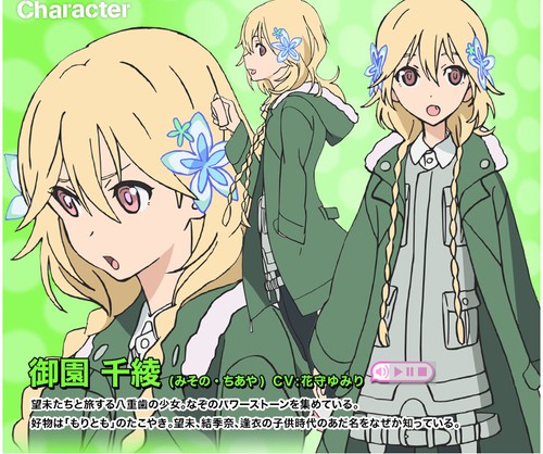 Yumiri Hanamori como Chiaya Misono, uma garota que viaja com Nozomi e as outras. Ela está recolhendo misteriosas “pedras de poder”. Sua comida favorita é Takoyaki. Por alguma razão, ela sabe os apelidos de infância de Nozomi, Yukina e Ai.