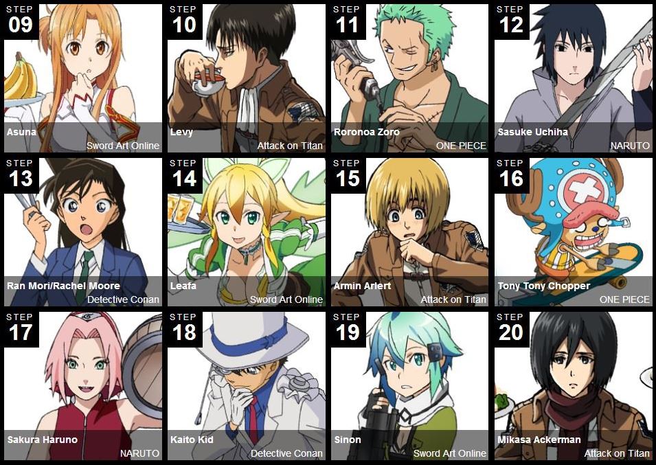 Até a semana passada quando nós divulgamos a iniciativa do projeto, apenas os personagens Naruto, Kirito, Eren, Conan e Luffy haviam sido revelados. Agora, a lista dos 20 já está completa: