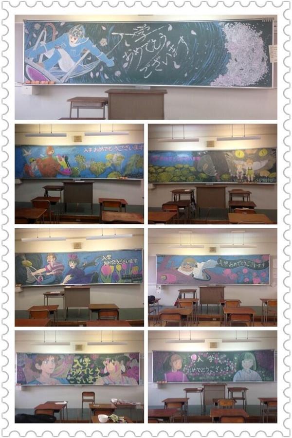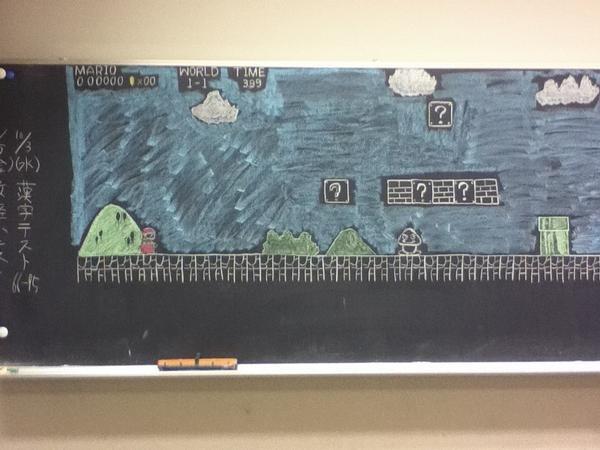 Enquanto houverem os quadros-negros (também conhecidos como lousas) nas salas de aula, sempre haverão alunos doidinhos para escreverem ou demonstrarem seus talentos artísticos. Porém, no caso desses japoneses, estes talentos foram levados a sério demais e muitos deles o compartilharam pelo twitter. Vamos dar uma olhadinha: