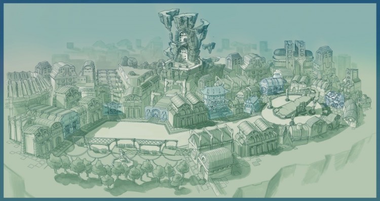 Uma das cidades que você pode visitar em ALO é a Sky Metropolos Lyne (空都ライン, leia-se Sora-to Line), que é um dos lugares mais importantes do jogo. Ela contém muitas lojas e oficinas que você pode usar para comprar armas e itens para se equipar e usar nas missões, além de várias tabernas.
