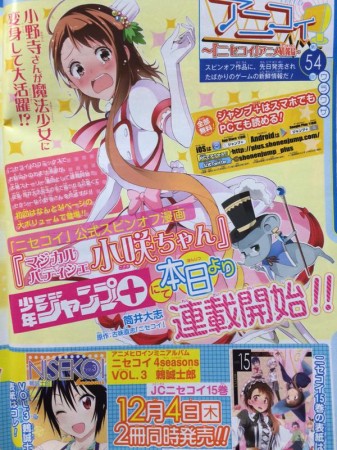 A Weekly Shonen Jump publicou que um novo manga spin-off de Nisekoi vem ai, o novo mangá será em mahou shoujo, ou seja, terá temática relacionado a Magia para meninas, com o titulo em ingles “Magical Patissier Kosaki-chan”, Kosaki Onodera será a personagem principal e provavelmente teremos uma mudança no ritmo do romantismo do original. O mangá estará disponível on-line através Shonen Jump Plus: