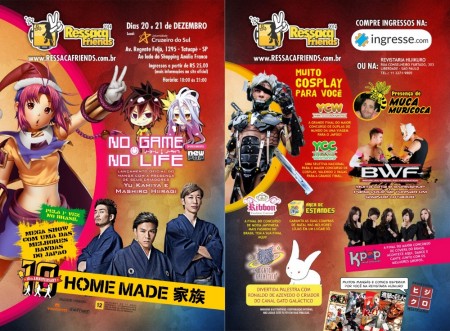O Ressaca Friends e a Editora New Pop têm orgulho de apresentar dois super destaques da programação:Lançamento do mangá “No Game No Life” com a presença dos desenhistas e roteiristas Yuu Kamia e Mashiro Hiiragi, seus autores, que visitam pela primeira vez um evento brasileiro e participarão de sessão de autógrafos.
