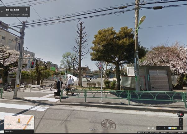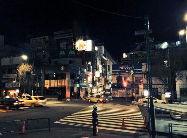 Este é o cruzamento da Junrei Kin com a Ou-jinja, onde aparece o produtor conversando com a personagem Rin Shibuya: