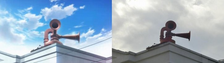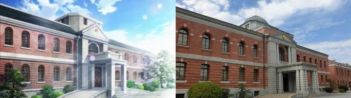 Já o blog Sazanami.net identificou as faixadas de alguns prédios antigos que também apareceram no anime: