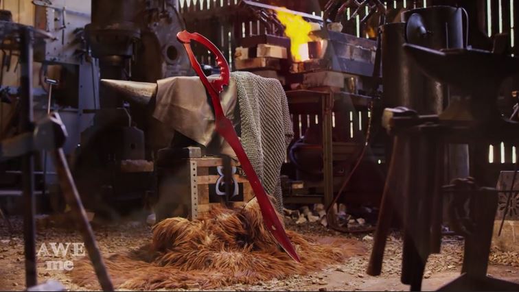 Segundo informações, para construir a arma foi usado o mesmo tipo de metal de tesouras convencionais. Depois de muitas marteladas, moagem, polimento e forjamento, a lâmina tesoura finalmente foi finalizada com um pouco de tinta vermelha e, em seguida, como eles sempre fazem, se divertiram cortando todos os tipos de coisas.