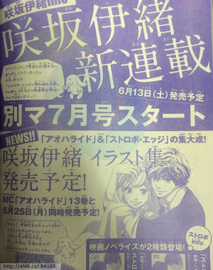 Além disso, a revista fez mais dois grandes anúncios, sendo o primeiro a publicação de uma coletânea de ilustrações de Io Sakusaka no dia 25 de Maio, mesmo dia que será publicado o 13º volume compilado do mangá Ao Haru Ride. Além de ilustrações de Aoharaido, serão publicadas ilustrações especiais de Strobe Edge.