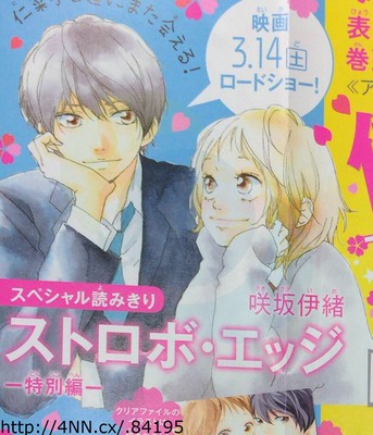 E por falar em Strobe Edge, a revista também anunciou que a série shoujo da autora, publicada entre 2007 a 2009, vai ganhar um capitulo especial na revista no dia 13 de Março, um dia antes da estreia do filme em live-action de Strobe Edge nos cinemas do Japão, que será estrelado pelos atores Sota Fukushi e Kasumi Arimura. Neste capitulo especial será contado um epilogo sobre os personagens Ninako, Ren e Ando.