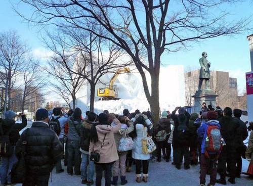 Tudo é muito lindo, mas assim como na vida, um dia as coisas acabam e com o fim do evento, começa o processo mais triste de trabalho, o de demolir as esculturas. Alguns japoneses param para assistir este momento e já ate o batizaram de Snow Demolitian Festival (Pode isso Arnaldo?):