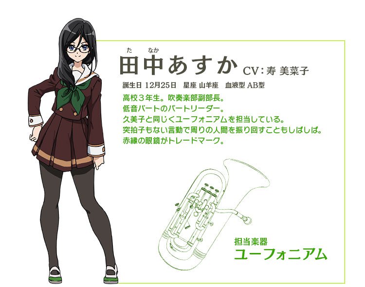Minako Kotobuki (Tsumugi Kotobuki em K-on!) como Asuka Tanaka, que toca Euphonium