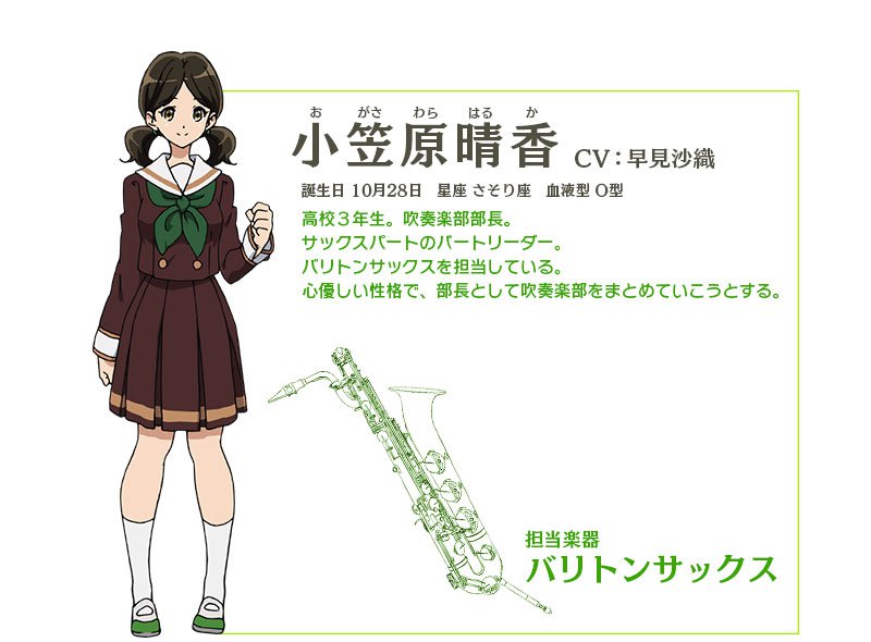 Saori Hayami (Yukino Yukinoshita de OreGairu) como Haruka Ogasawara, que toca Saxofone