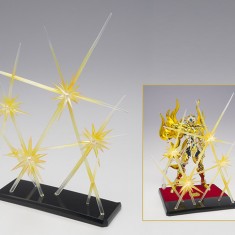 As figuras vão custar cerca de 90 doletas( aqui uns 300 mangos) e você pode deixar o cavaleiro ‘pelado’ e a armadura montadinha em sua forma de signo ou vestir seu bonequinho com as pecinhas dela. Também pode alterar a face e com um adicional de 20 doletas pode decorar elas com peças que simulam os golpes disparados pelos herois de ouro.