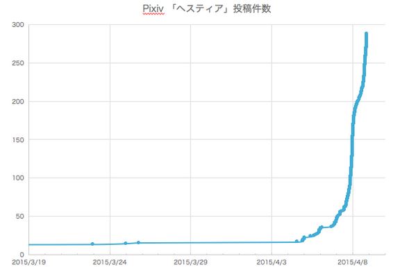 Mesmo já conhecida através da série de mangás e light-novel, a popularidade da personagem cresceu muito somente com a exibição do primeiro episódio, assim como mostra esse gráfico com dados de busca do Pixiv: