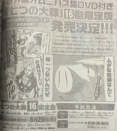 A distribuidora Shogakukan irá distribuir o DVD em edição limitada no 16º volume do mangá em 12 de Agosto por cerca de 25 dólares. O primeiro OVA que é um arco apenas do Ban, será lançado no 15º volume em 17 de Junho próximo.