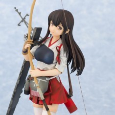A figure é produzida toda em PVC e ABS, com escala de 1/7 e medindo 23 centímetros de altura. Ela foi esculpida pelo artista Mowano e colorizada por Nagumo Chizuru, produzida em parceria das fabricantes FunniKnights e Aoshima. O excelente trabalho de pintura realizado na figure destacam bem as cores da saia com o restante do uniforme. Akagi aparece com uma expressão mais meiga, porém pronta para combate, onde carrega seu arco e seu kit de flechas. Qualquer colecionador ficaria louco para te-la em sua coleção.