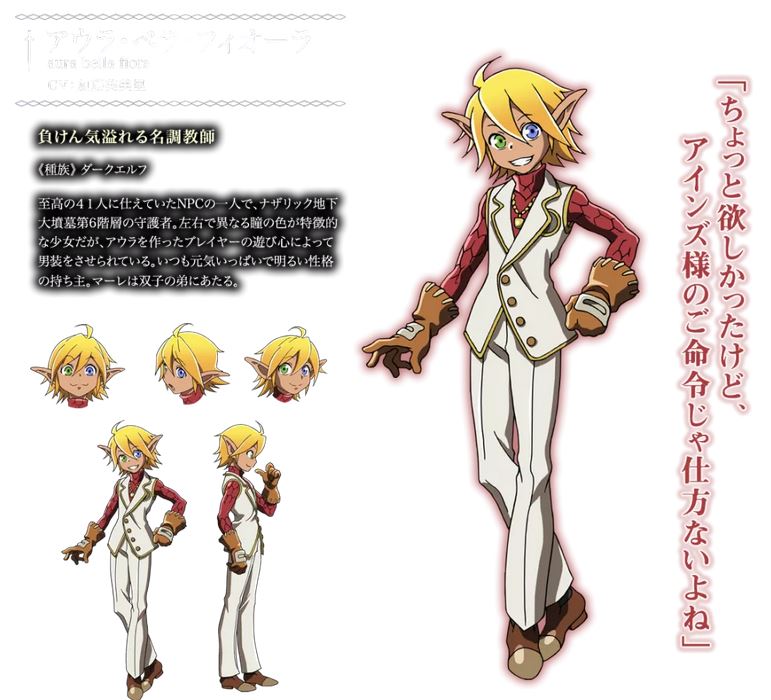 - Yumi Hara (Marielle de Log Horizon, Lilith Asami de Trinity Seven) como Albedo (Nível 10 Imp; Nível 10 Guardian)