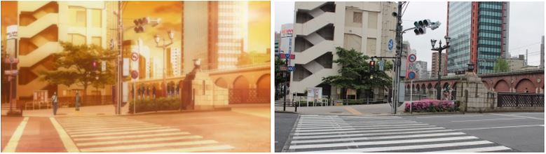Abaixo, você confere algumas imagens comparando as cenas do anime em qual a construção aparece.