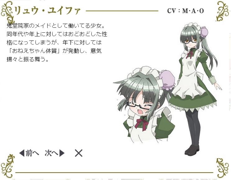 M.A.O Ichimichi (Akano Koumoto de Jitsu wa Watashi wa; Renge Komadori de Sekai Seifuku: Bouryaku no Zvezda) como Ryuu Yuifa