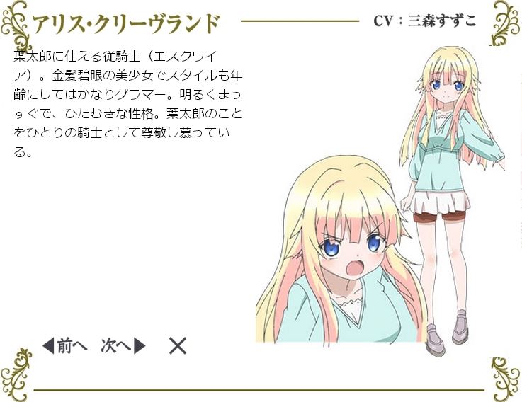 Suzuko Mimori (Nanami Momozono de Kamisama Hajimemashita; Umi Sonoda de Love Live! School Idol Project) como Alice Cleveland
