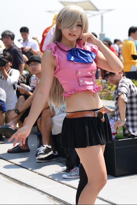 Vamos começar com a cosplay de Elizabeth que chamou a atenção dos fãs graças a sua liderança feminina de Nanatsu no Taizai: