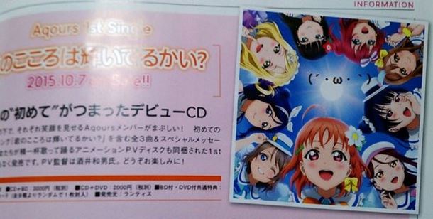 O mais importante é que a revista apresenta também a capa do primeiro single do grupo Aquors, que tem previsão de lançamento no Japão em 07 de Outubro de 2015. Ela apresenta as nove membros: Riko Sakurauchi, You Watanabe, Chika Takami, Kanan Matsuura, Dia Kurosawa, Yoshiko Tsushima, Hanamaru Kunikida, Ruby Kurosawa e Mari Ohara, vestindo as roupas caracterizadas acima.
