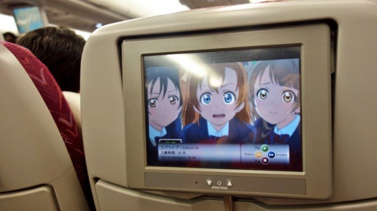 Mas o que ele não esperava, era encontrar no catálogo, o anime Love Live! disponível para assistir durante o voo: