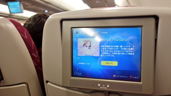 カタール航空、ラブライブ(1話だけ)あって驚いた。機内のディスプレイに日本のアニメが映る衝撃。 pic.twitter.com/ZcDI42i784
