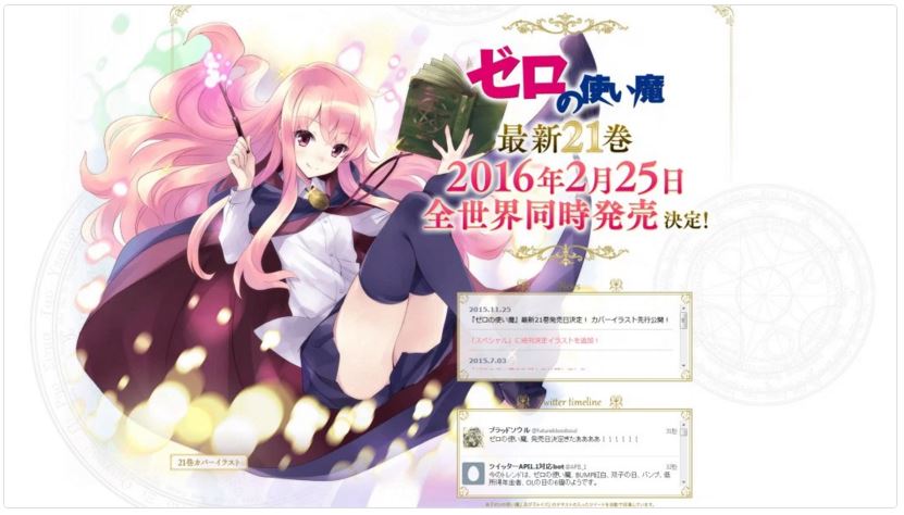 A MF Bunko da Media Factory atualizou o site oficial de Zero no Tsukaima nesta quarta-feira (25/11) anunciando a data de lançamento do 21º volume da série de light-novel original.