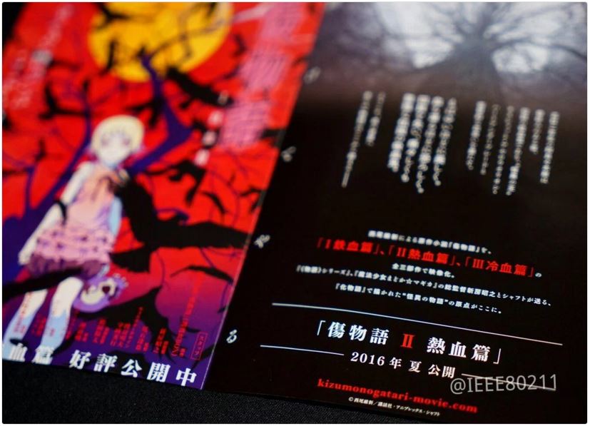 Foi revelado neste fim de semana que o segundo filme da trilogia Kizumonogatari, intitulado Kizumonogatari Part 2: Nekketsu-hen, baseado nas obras de light-novel Monogatari Series de NisiOisin e Vofan, será lançado durante a Temporada de Verão 2016, entre Julho à Setembro.