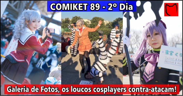 Foi realizado nesta quarta-feira (30/12) em Tóquio o segundo dia da 89ª edição do Comic Market, ou Comiket 89 que está comemorando o seu 40º aniversário. E assim como foi no primeiro dia, foi mais um dia louco e caótico (no bom sentido, claro) dia. Vamos continuando a nossa cobertura do evento trazendo mais um pouco dos mais loucos cosplayers que estiveram por lá e postaram seus registros pelo twitter.
