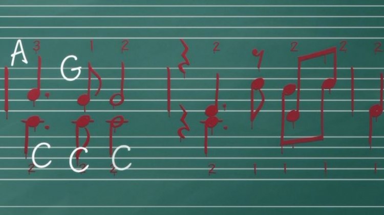 Mas logo no primeiro episódio, já tem o primeiro mistério, que é descobrir quem e o porquê escreveu uma mensagem na lousa usando notas musicais. Nisso, é demonstrada a capacidade fantástica de Haruta em raciocinar tudo o que pode estar relacionado levantando evidencias e trazendo um pouco de conhecimento musical para a história. Isso foi bem bacana, apesar da nossa querida Chika parecer meio perdida. Ainda assim, o mistério foi solucionado, embora eu não ter achado nenhuma surpresa nisso.