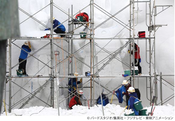 制作中の『ラブライブ!μ’s』雪像