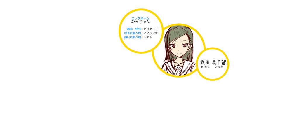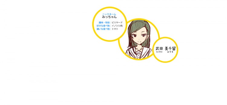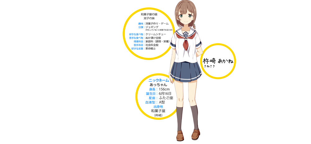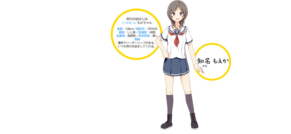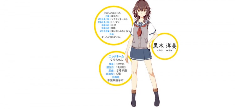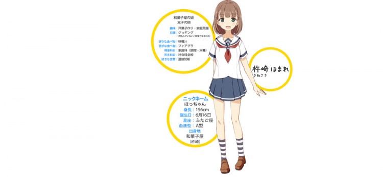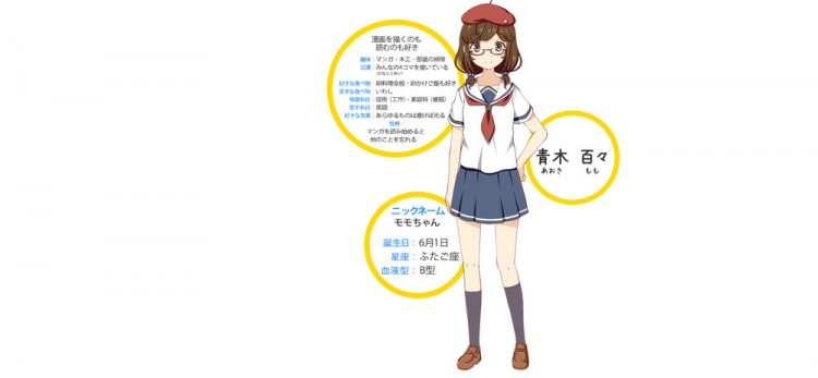 Além disso, a revista revelou o design dos personagens de personagens chamados Rin Shirekoto, Tsugumi Yagi, Megumi Uda, Shima Tateishi, Mei Irizaki, Koko Nosa, Kaede Marikōji, e Machiko Noma.