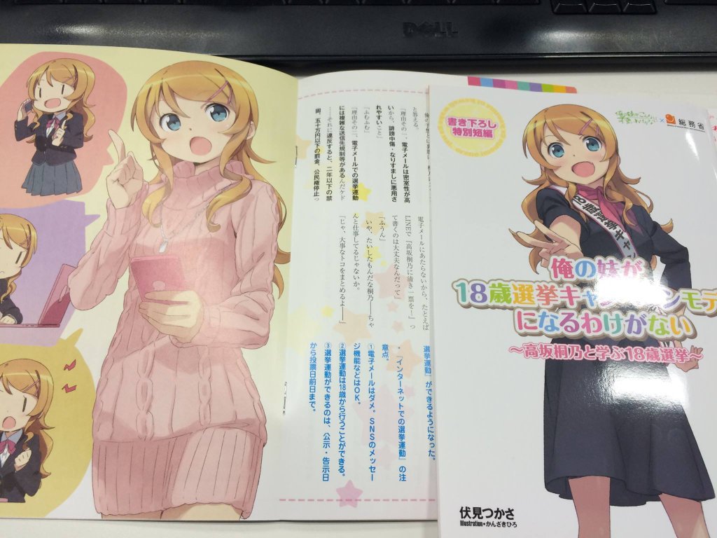 E para incentivar os novos eleitores a votarem, a personagem Kirino Kousaka foi escolhida para a campanha pelo Ministério de Assuntos Internos e Comunicações do Japão, junto com a Dengeki.