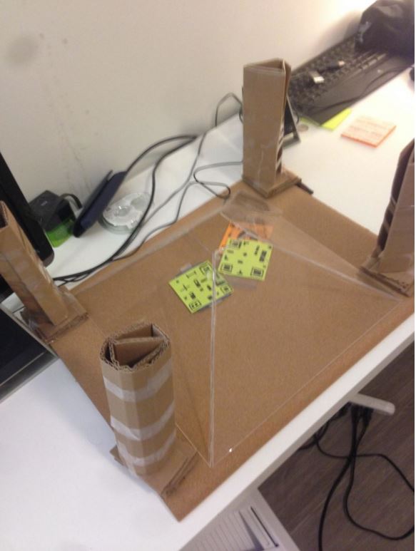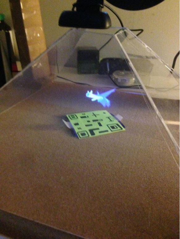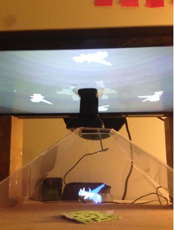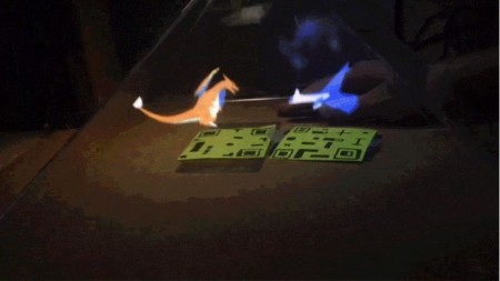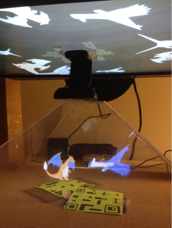 Um usuário do imgur, Kennywdev fez um prisma de plexiglass e o montou com uma câmera na parte superior para rastreamento de imagens. Após isso, ele conseguiu projetar algumas imagens de Pokémons em 3D nestes planos pixelizados captados pela câmera.
