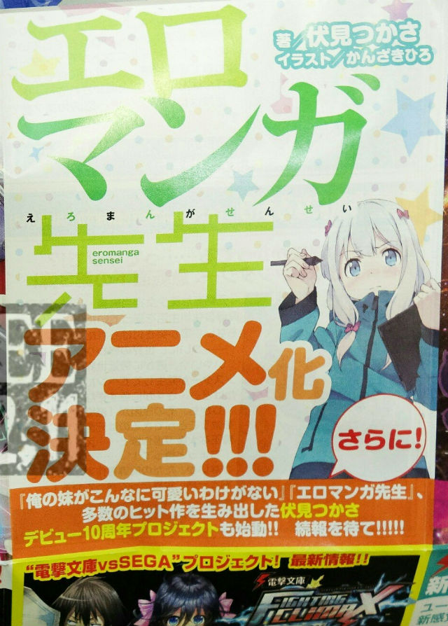 A revista Dengeki Bunko anunciou nesta terça-feira (09/03) que a light-novel Eromanga Sensei, de Tsukasa Fushimi (Oreimo) recebeu sinal verde para sua produção em anime de TV.