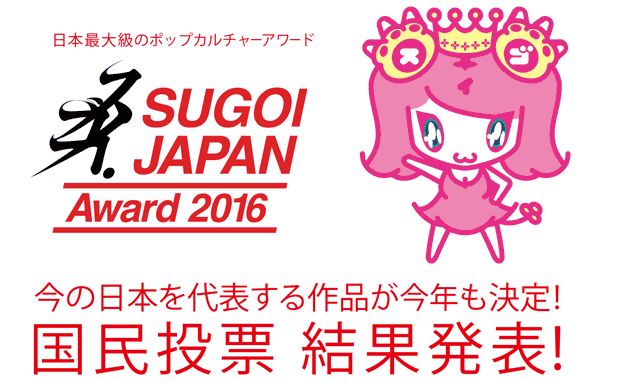 O Yomiuri Shimbun anunciou os vencedores da edição de 2016 do prêmio anual Sugoi Japan Awards 2016. Os vencedores destes prêmios são obras que os fãs estrangeiros sentem que precisam de atenção e deve ser usados para promover o Japão. As categorias são divididas em anime, manga, light-novels e novels de entretenimento.
