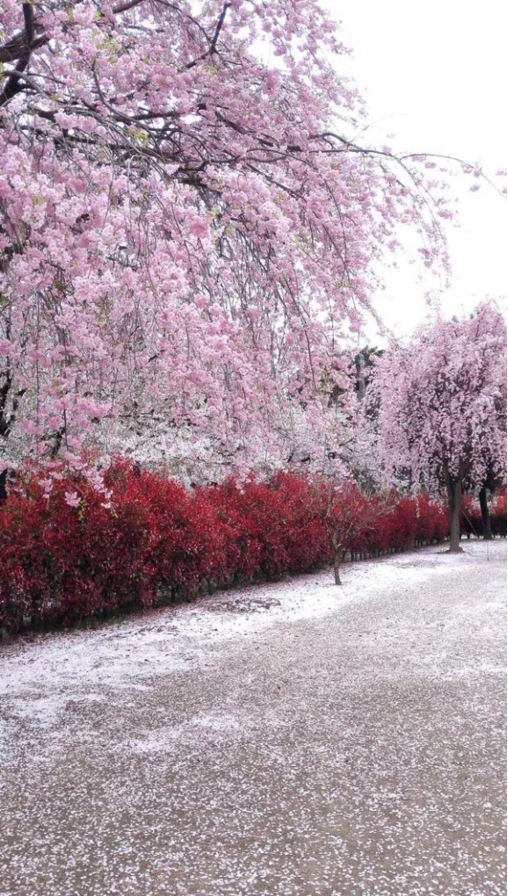 Estas fotos realmente se parecem com uma tempestade de neve que rolou a pouco:鳥居から本堂まで下も上も桜さくらサクラ。