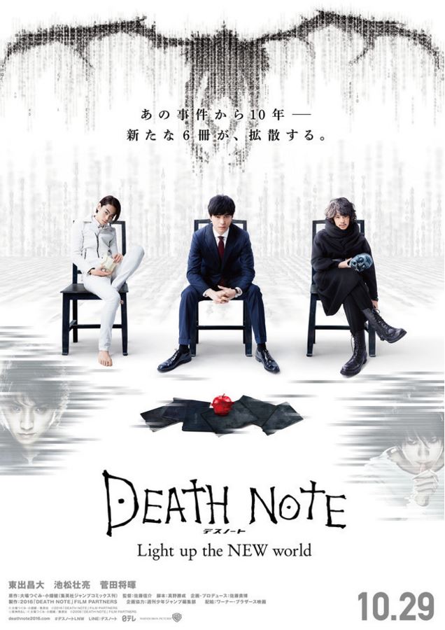Com distribuição pela Warner Brothers e dirigido por Shinsuke Sato (Gantz, Library Wars) este novo filme para já intitulado de “Death Note 2016” é a “sequência proibida” dos dois anteriores filmes live-action de Death Note.