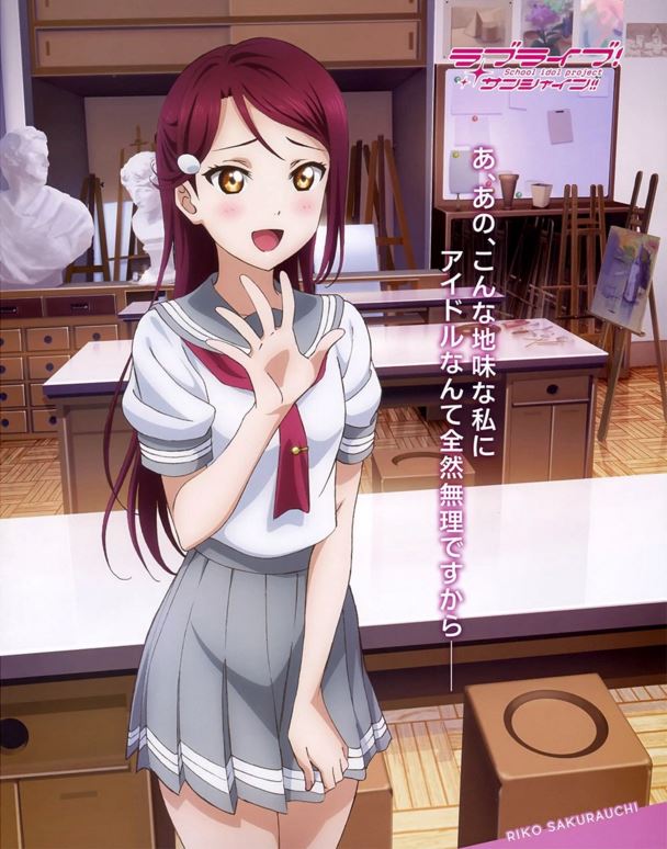 Rikako Aida (Poona em Hyperdevotion Noire: Goddess Black Heart) será a voz de Riko Sakurauchi, uma estudante do 2º ano que antes vivia em Akihabara, Tóquio e que se transferiu para Uchiura. Uma menina simples, com uma personalidade timida. Boa em artes, prefere o interior. Ela tornou-se uma idol da escola devido à influência de Chika.