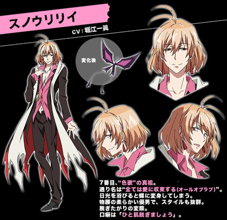 Outros membros do elenco incluem Ryohei Kimura como Lawless, Nobunaga Shimazaki como Licht Jekylland Todoroki, Ayumu Murase como Hugh the Dark Algernon III e Yuuki Ono como Tetsu Sendagaya.