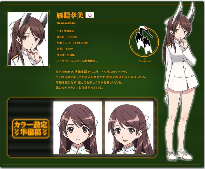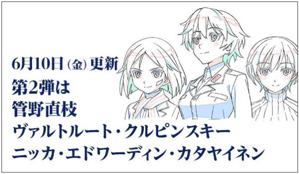 O design dos personagens em cores para Naoe Kanno, Waltrud Krupinski e Nikka Edvardine Katajainen vão estrear na próxima semana.