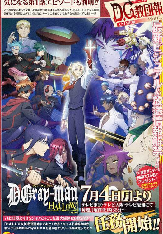 Segundo a revista, o anime estreará no dia 04 de Julho na TV Tokyo, TV Osaka e TV Aichi. O novo anime é uma sequência e é intitulado D.Gray-man Hallow.