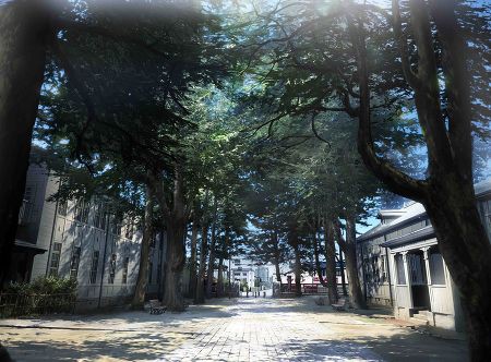 O conceito de artes retrata um parque e o quarto de Naho. Abaixo da imagem produzida para retratar o parque, você tem uma imagem real dele: