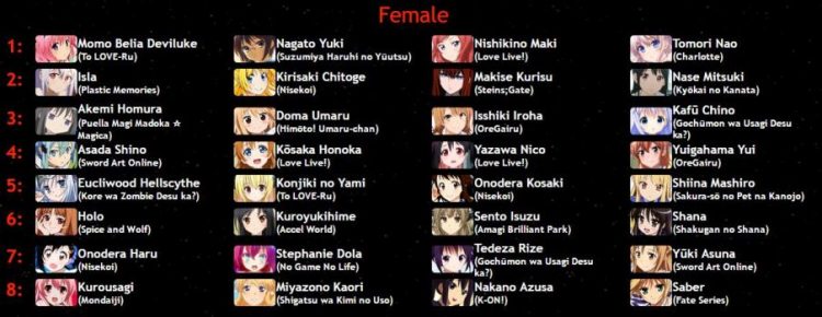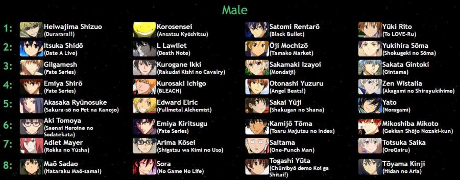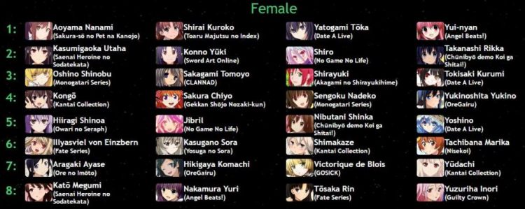 O Período Esmeralda, que tem como campeões de 2015 Chitoge Kirisaki (Nisekoi) e Koyomi Araragi (Monogatari Series).